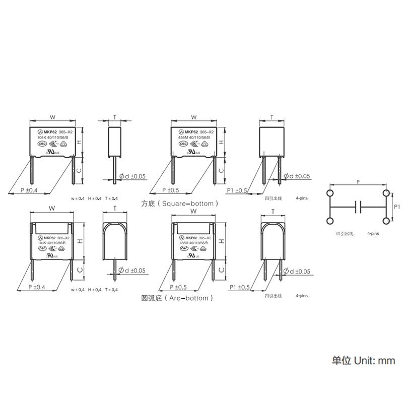 | 250/275/80/300/310VAC | 0.022 | 10.5 | 9 | 4 | 7.5 | 0.6 |